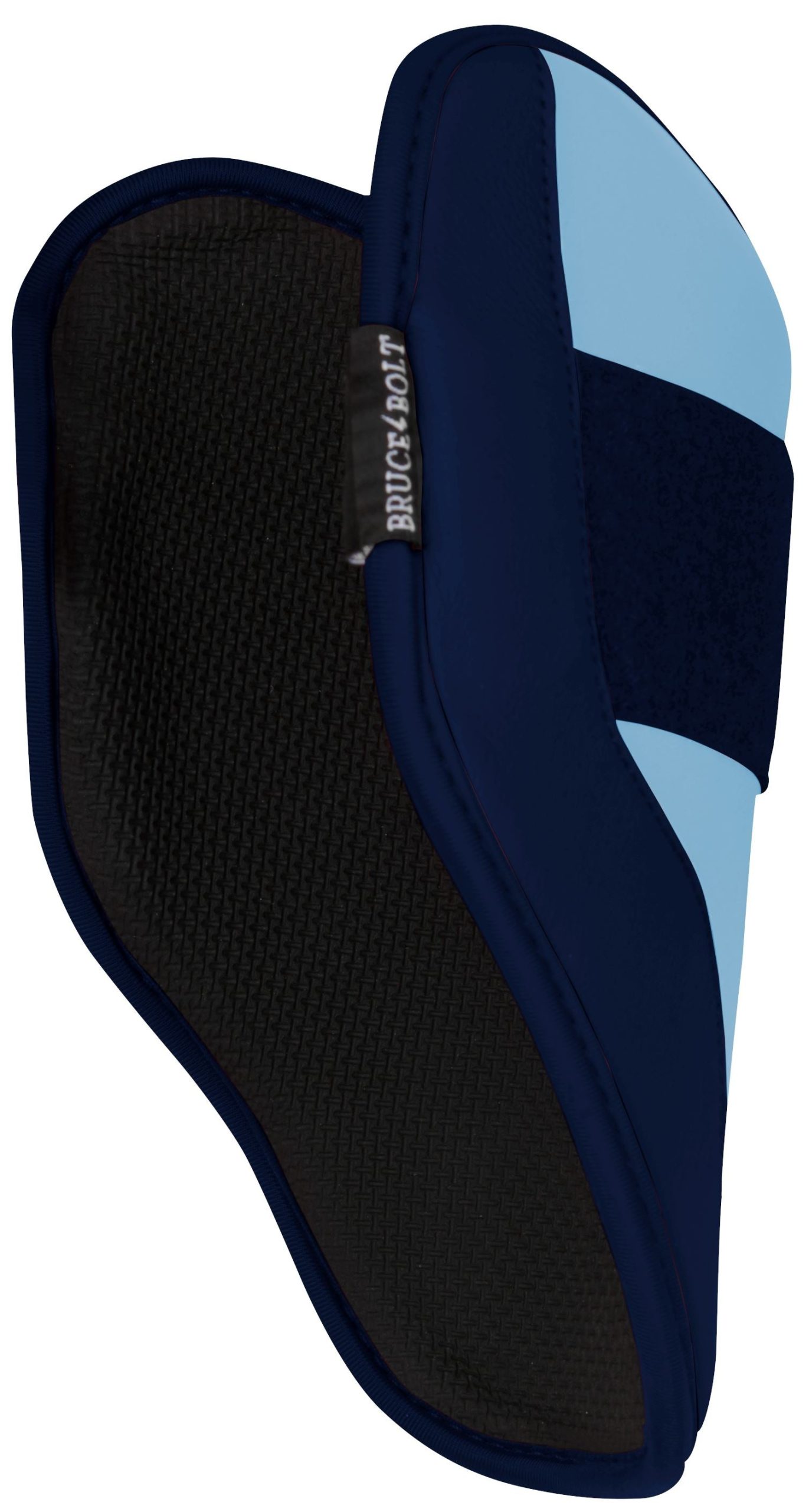BRUCE BOLT’s PREMIUM PRO Elbow Guards feature a semi-moldable thermoplastic protective shell with a Cabretta leather outer and proprietary Sharkskin inner to prevent movement during the swing. 2 wide removable elastic strap locks the elbow guard in place providing maximum protection at the plate.