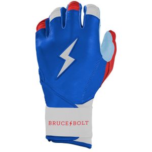 HIGHEST QUALITY. MOST DURABLE BATTING GLOVE IN BASEBALL: Each pair of BRUCE BOLT batting gloves are handmade by skilled craftsmen using only the highest quality 0.9mm Cabretta leather and stitching techniques which makes our gloves buttery soft but more durable than any other glove on the market.