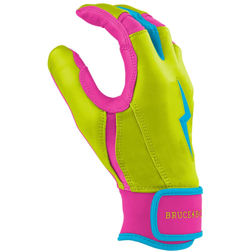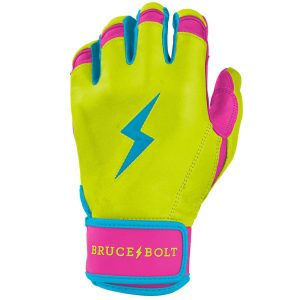 HIGHEST QUALITY. MOST DURABLE BATTING GLOVE IN BASEBALL AND SOFTBALL: Each pair of BRUCE BOLT batting gloves are handmade by skilled craftsmen using only the highest quality 0.9mm Cabretta leather and stitching techniques which makes our gloves buttery soft but more durable than any other glove on the market.