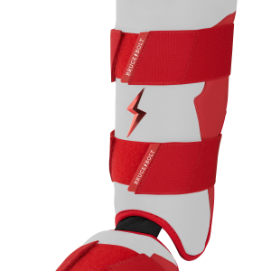 BRUCE BOLT’s PREMIUM PRO Leg & Ankle Guards feature a semi-moldable thermoplastic protective shell with a Cabretta leather outer and Sharkskin inner to keep the guard in place at the plate and while running the bases. 2 wide removable elastic strap locks the Leg guard in place providing maximum protection at the plate.