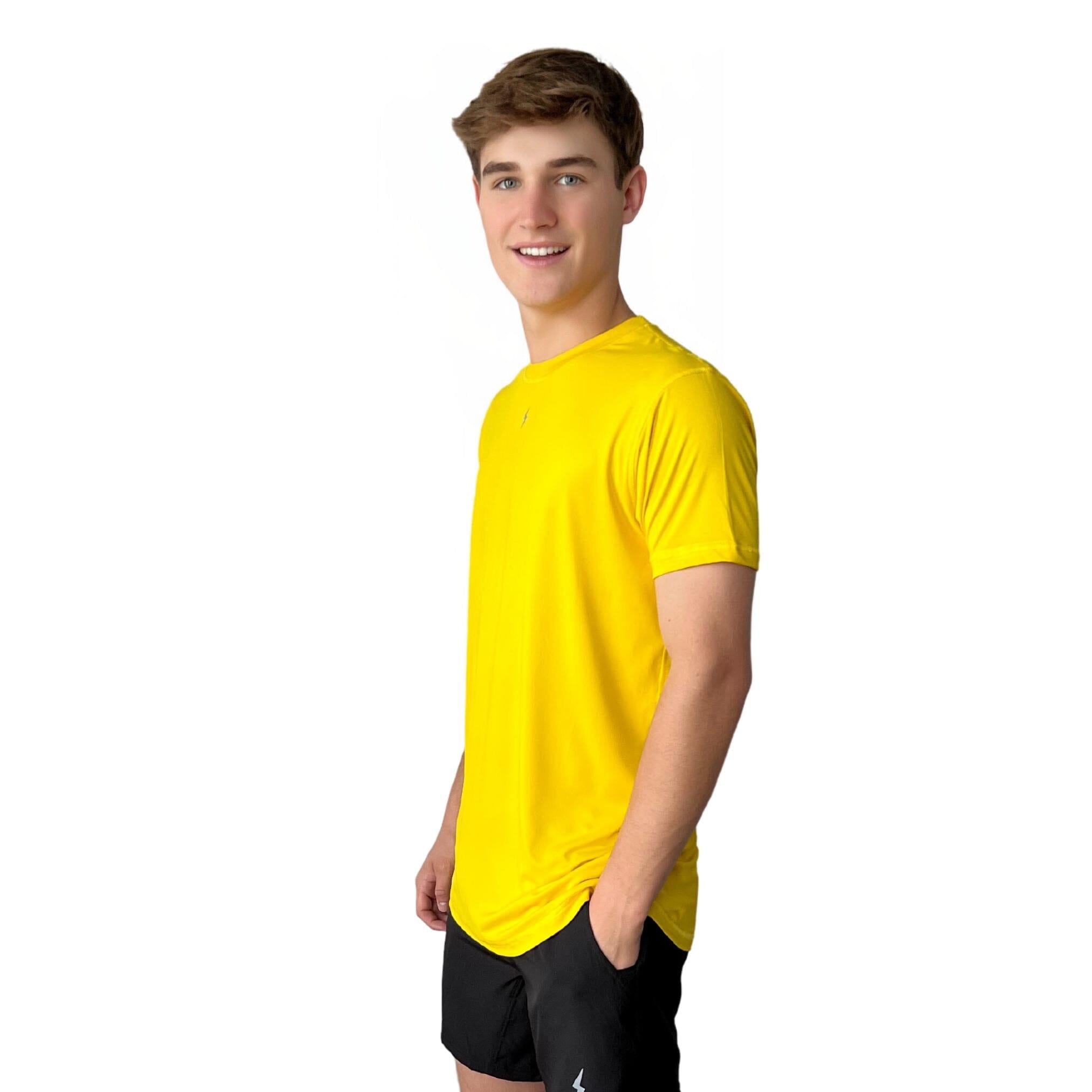 This lightweight. moisture-wicking. 4-way stretch performance t-shirt is BRUCE BOLT’s first attempt at performance apparel with?form-fitting. 4-way stretch fabric and a reflective BOLT logo just under the collar.