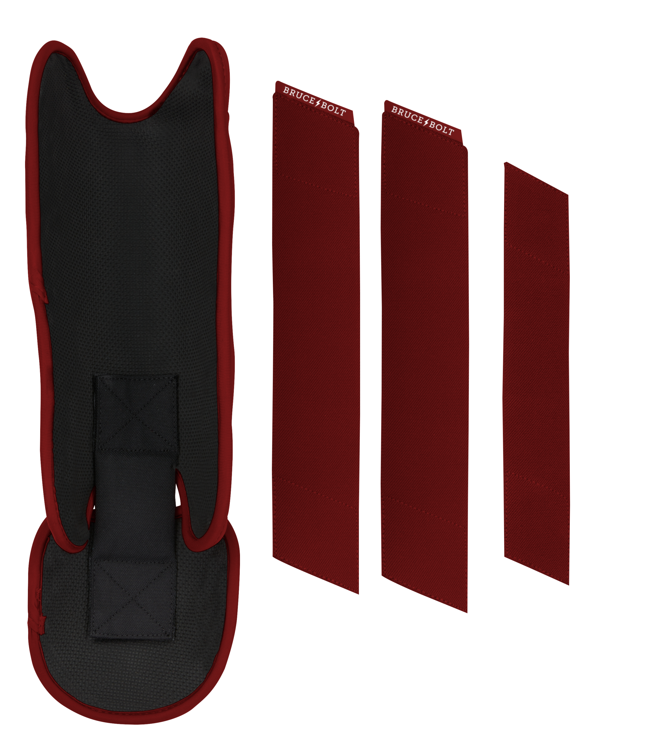 BRUCE BOLT’s PREMIUM PRO Leg & Ankle Guards feature a semi-moldable thermoplastic protective shell with a Cabretta leather outer and Sharkskin inner to keep the guard in place at the plate and while running the bases. 2 wide removable elastic strap locks the Leg guard in place providing maximum protection at the plate.