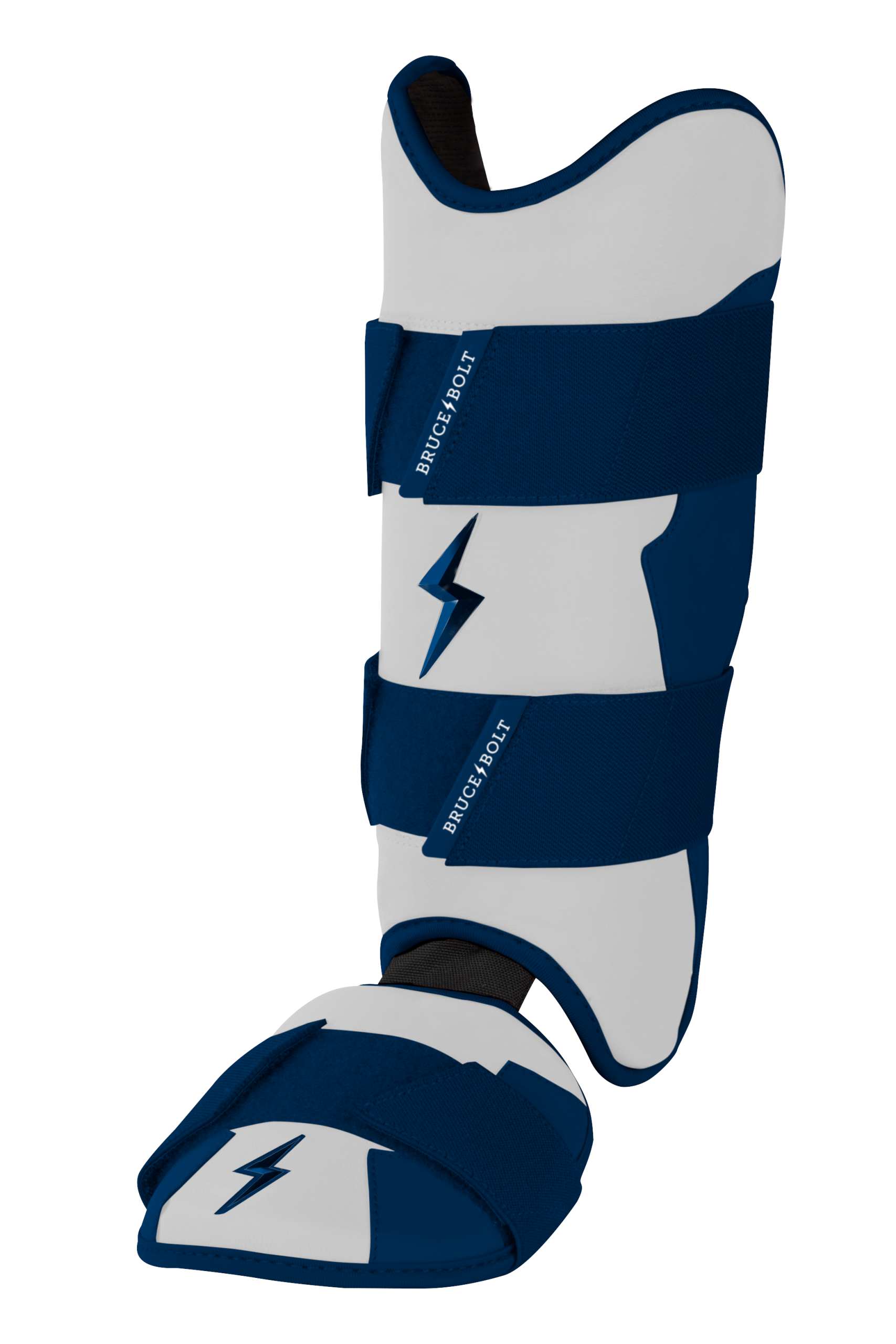 BRUCE BOLT’s PREMIUM PRO Leg & Ankle Guards feature a semi-moldable thermoplastic protective shell with a Cabretta leather outer and Sharkskin inner to keep the guard in place at the plate and while running the bases. 2 wide removable elastic strap locks the Leg guard in place providing maximum protection at the plate.