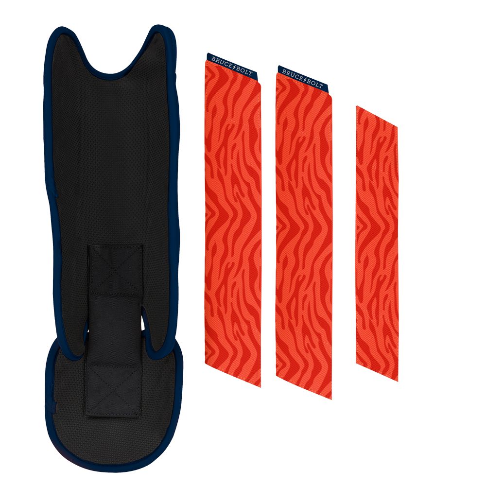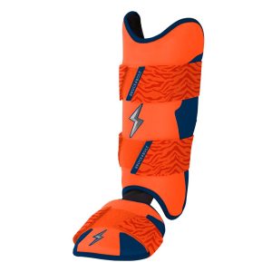 BRUCE BOLT’s PREMIUM PRO Leg & Ankle Guards feature a semi-moldable thermoplastic protective shell with a Cabretta leather outer and Shark Skin inner to keep the guard in place at the plate and while running the bases. 2 wide removable elastic strap locks the Leg guard in place providing maximum protection at the plate.