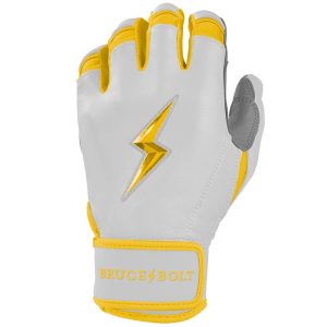 HIGHEST QUALITY. MOST DURABLE BATTING GLOVE IN BASEBALL: Each pair of BRUCE BOLT batting gloves are handmade by skilled craftsmen using only the highest quality 0.9mm Cabretta leather and stitching techniques which makes our gloves buttery soft but more durable than any other glove on the market.