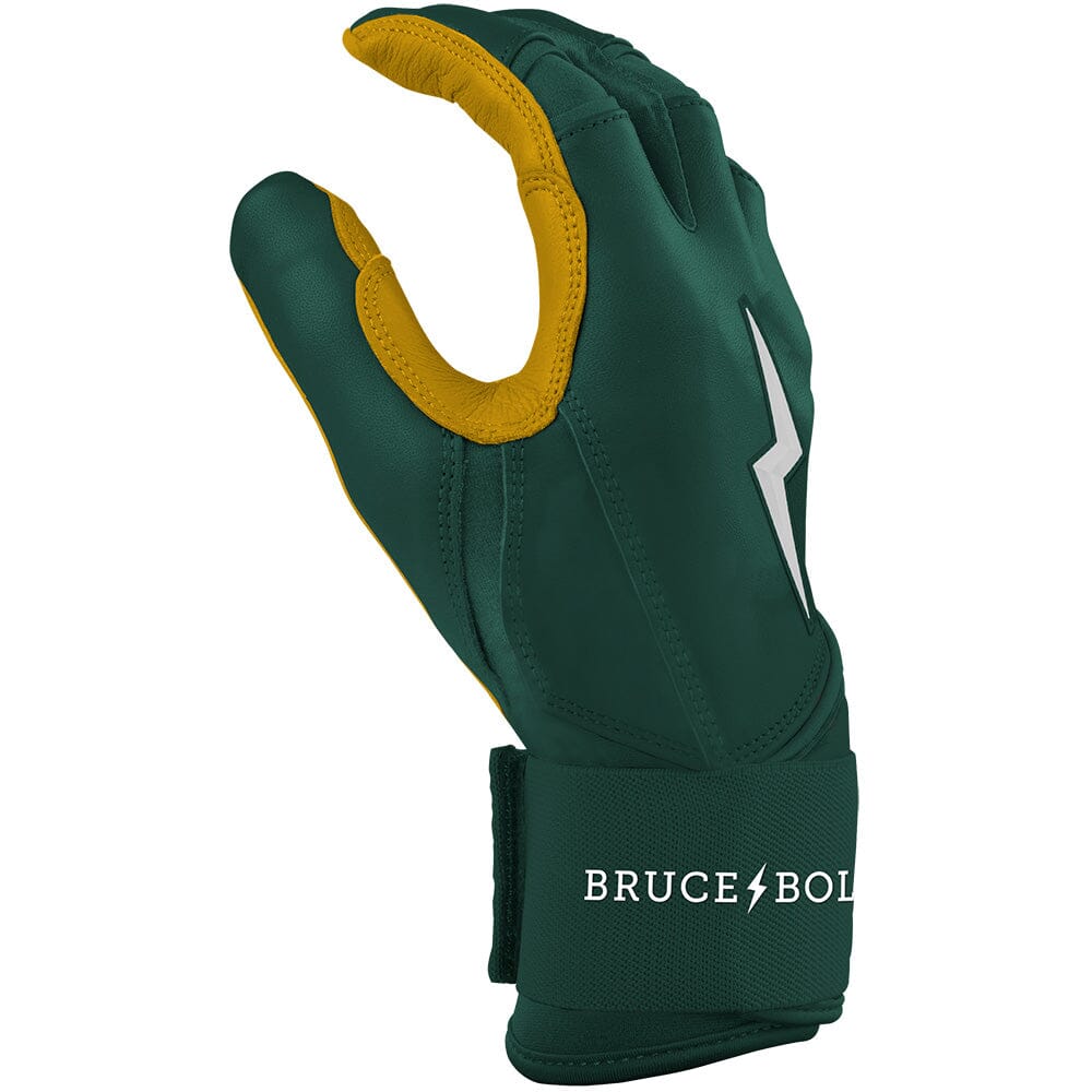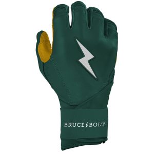 HIGHEST QUALITY. MOST DURABLE BATTING GLOVE IN BASEBALL: Each pair of BRUCE BOLT batting gloves are handmade by skilled craftsmen using only the highest quality 0.9mm Cabretta leather and stitching techniques which makes our gloves buttery soft but more durable than any other glove on the market.