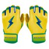 HIGHEST QUALITY. MOST DURABLE BATTING GLOVE IN BASEBALL: Each pair of BRUCE BOLT batting gloves are handmade by skilled craftsmen using only the highest quality 0.9mm Cabretta leather and stitching techniques which makes our gloves buttery soft but more durable than any other glove on the market.