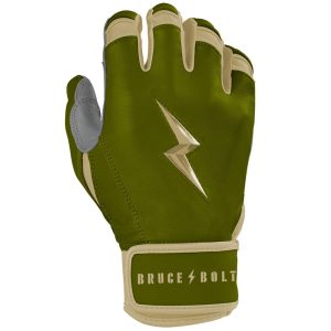 HIGHEST QUALITY. MOST DURABLE BATTING GLOVE IN BASEBALL: Each pair of BRUCE BOLT batting gloves are handmade by skilled craftsmen using only the highest quality 0.9mm Cabretta leather and stitching techniques which makes our gloves buttery soft but more durable than any other glove on the market.