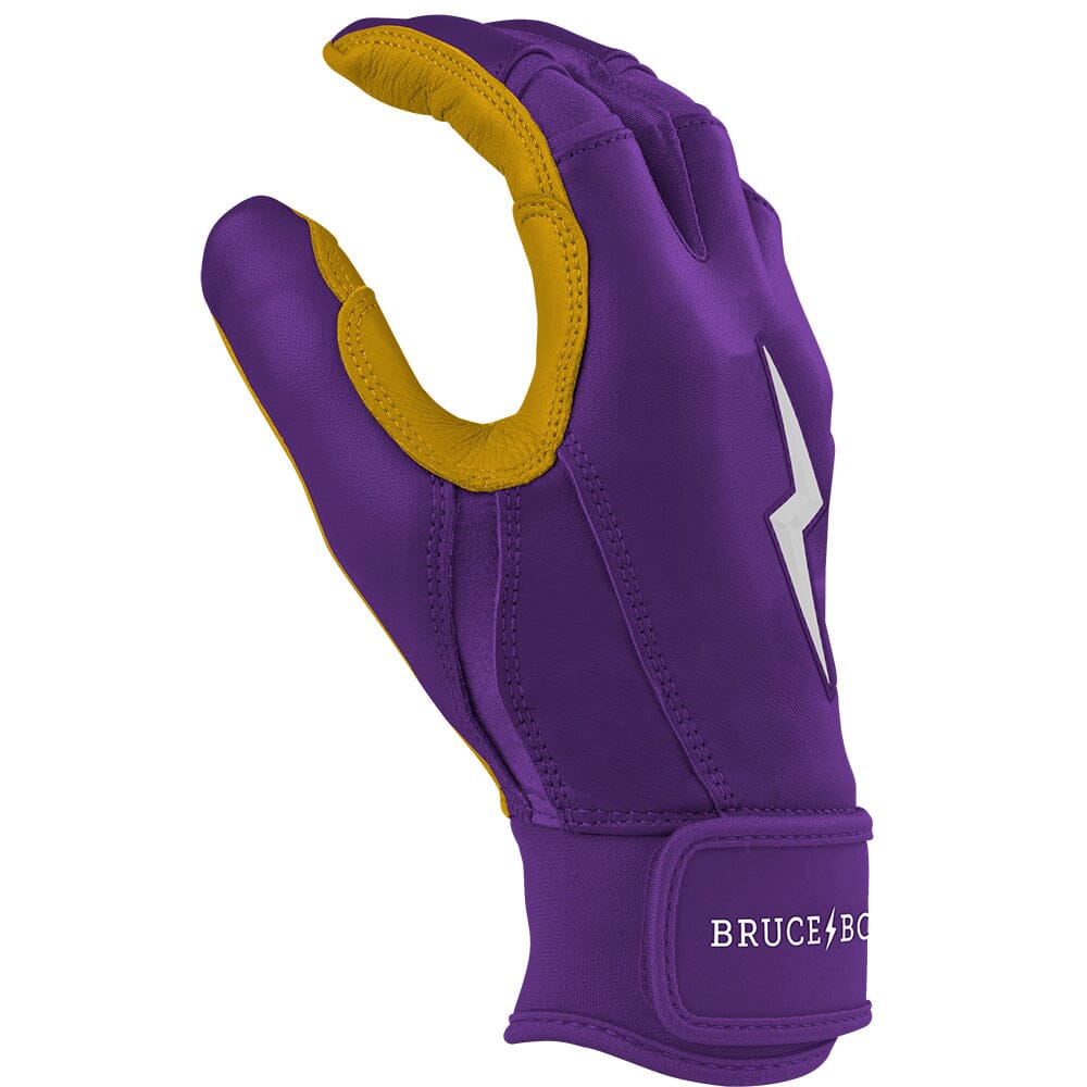 HIGHEST QUALITY. MOST DURABLE BATTING GLOVE IN BASEBALL: Each pair of BRUCE BOLT batting gloves are handmade by skilled craftsmen using only the highest quality 0.9mm Cabretta leather and stitching techniques which makes our gloves buttery soft but more durable than any other glove on the market.