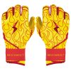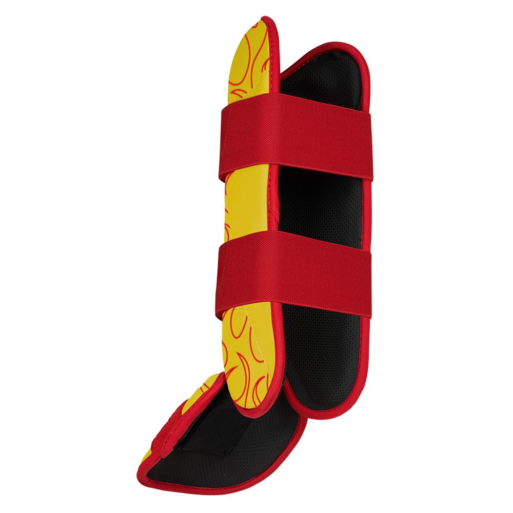 Inspired by his love of Greek mythology and his fiery style of play. the Harrison Bader Signature Series Leg Guard features a semi-moldable thermoplastic shell for elite-level protection. wrapped in bold. red flame motif on Cabretta leather. A Shark Skin liner ensures zero slippage. while dual 2 elastic straps keep it locked in place no matter how hard you run.